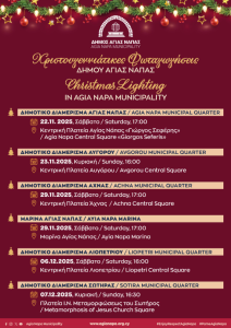 • Χειμερινό Πολιτιστικό Πρόγραμμα του Δήμου Αγίας Νάπας για τον Δεκέμβριο 2025