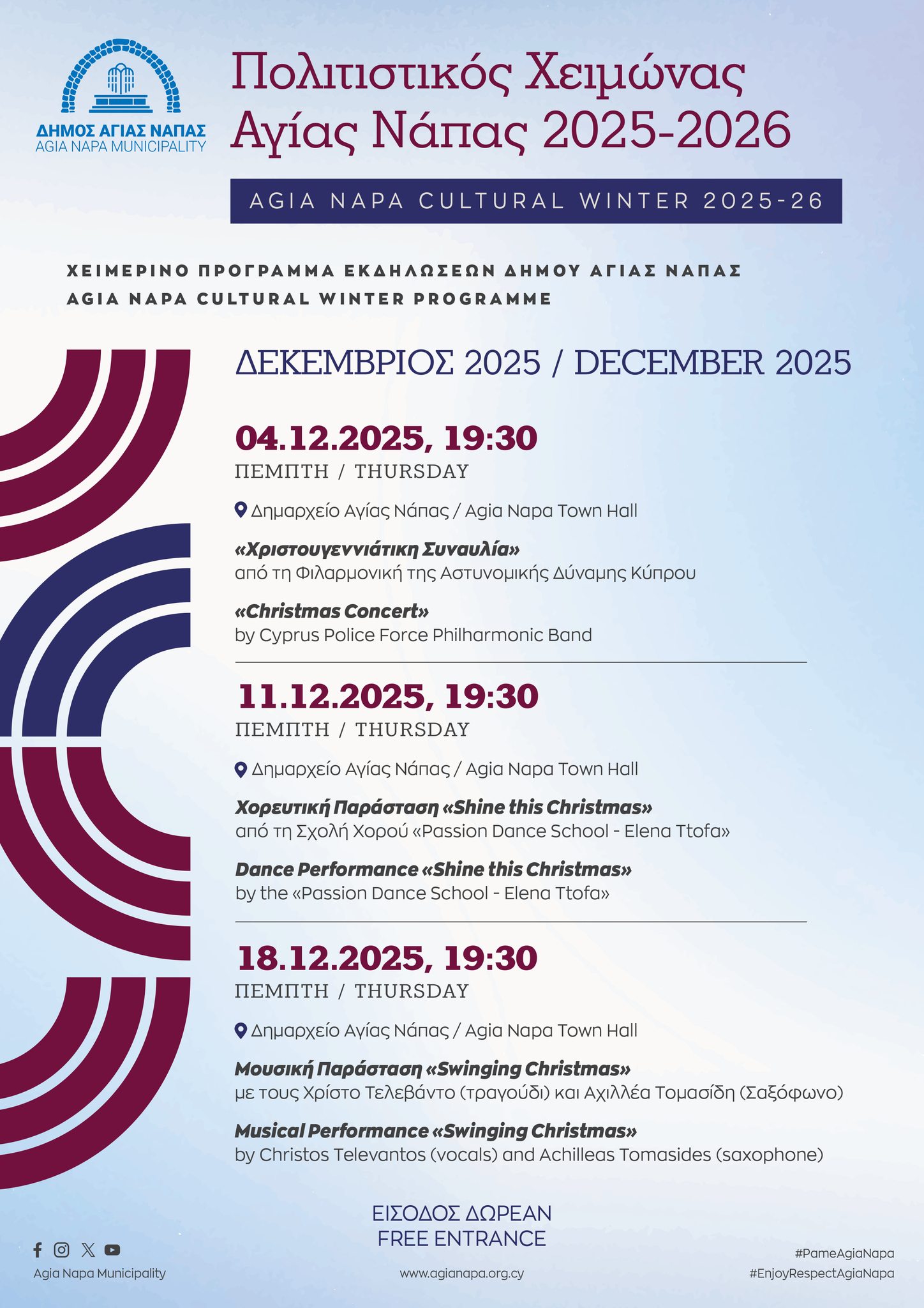 • Χειμερινό Πολιτιστικό Πρόγραμμα του Δήμου Αγίας Νάπας για τον Δεκέμβριο 2025